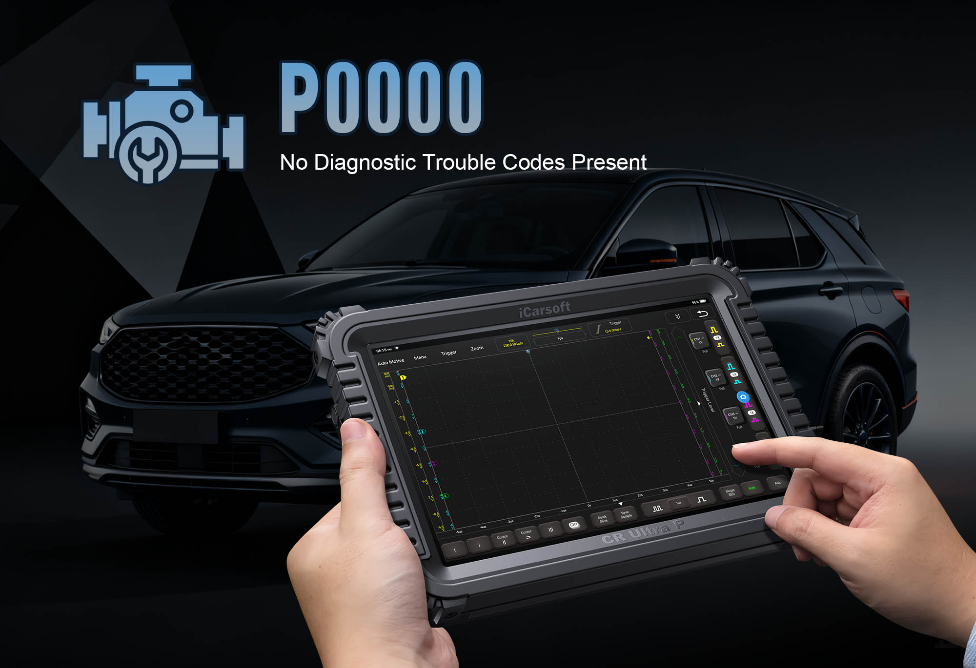 Plug the CR Ultra P into your vehicle’s OBD-II port, power on the tool, and select AutoVIN Identify to auto-detect make, model, and intake system type (e.g., variable intake manifold).