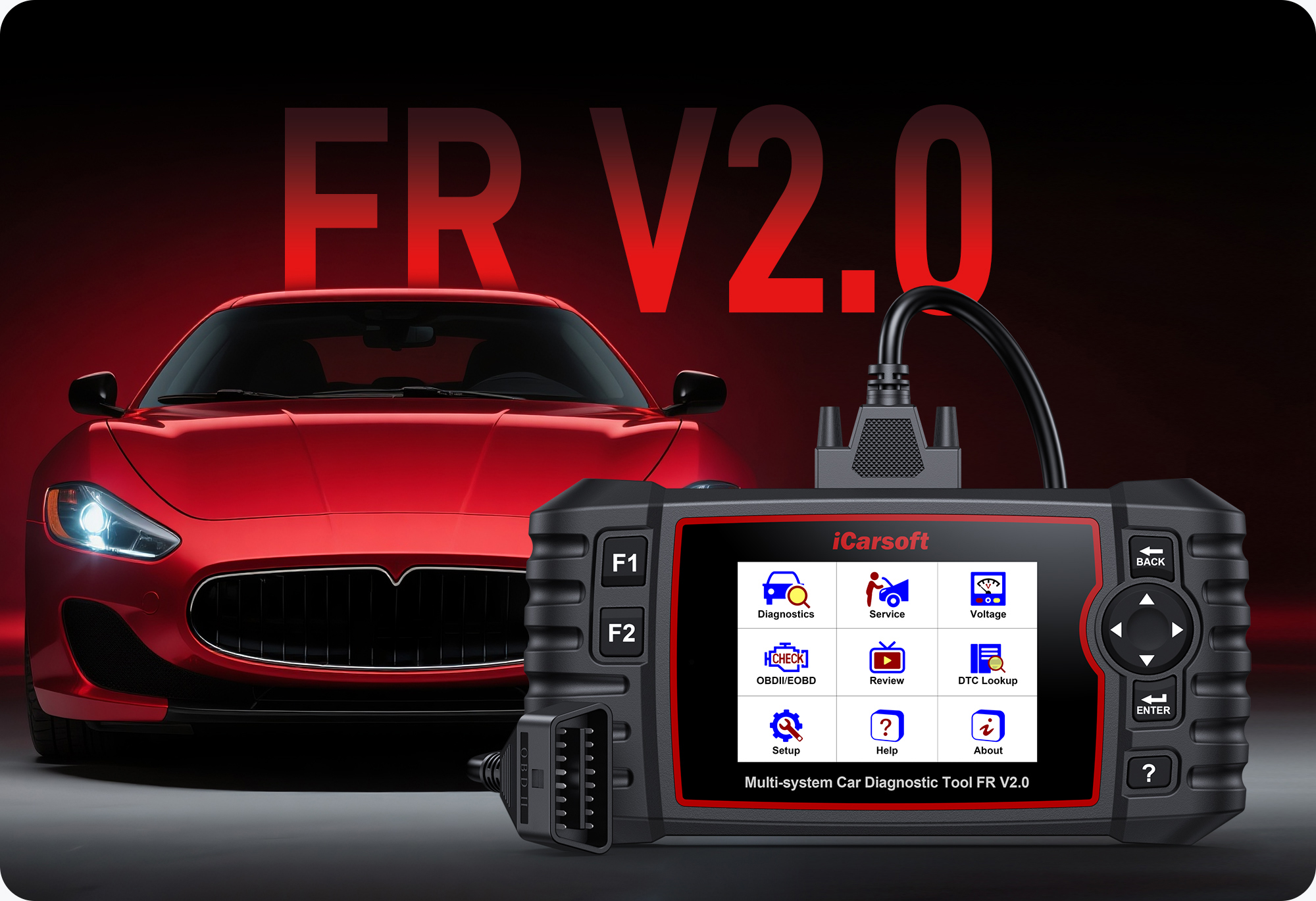 iCarsoft FR V2.0 is a professional and powerful car diagnostic tool for multi-brand vehicles. It performs a comprehensive scan of all supported systems within your vehicle. In addition to the regular 4 systems such Engine, ABS, Airbag and Transmission, it covers more complex systems diagnostic functions. The FR V2.0 is specially made for home mechanics, DIYers, and professionals. Give your aging cars satisfying routine maintenance to avoid costly repairs, a breakdown, or even a crash. General diagnostic functions as following: