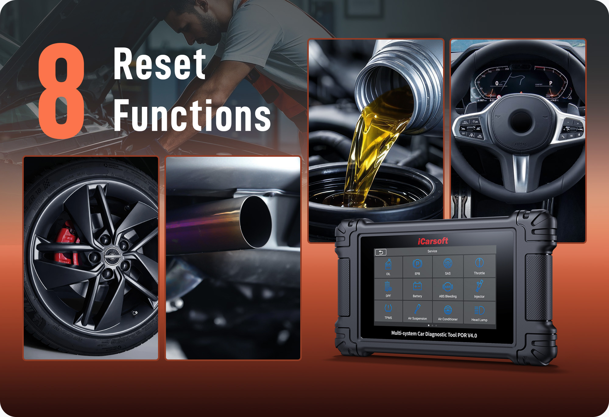 ● TPMS Reset: Allows you to look up the tire sensor IDs from the vehicle's ECU, inputting TPMS sensor replacement IDs and testing sensors.