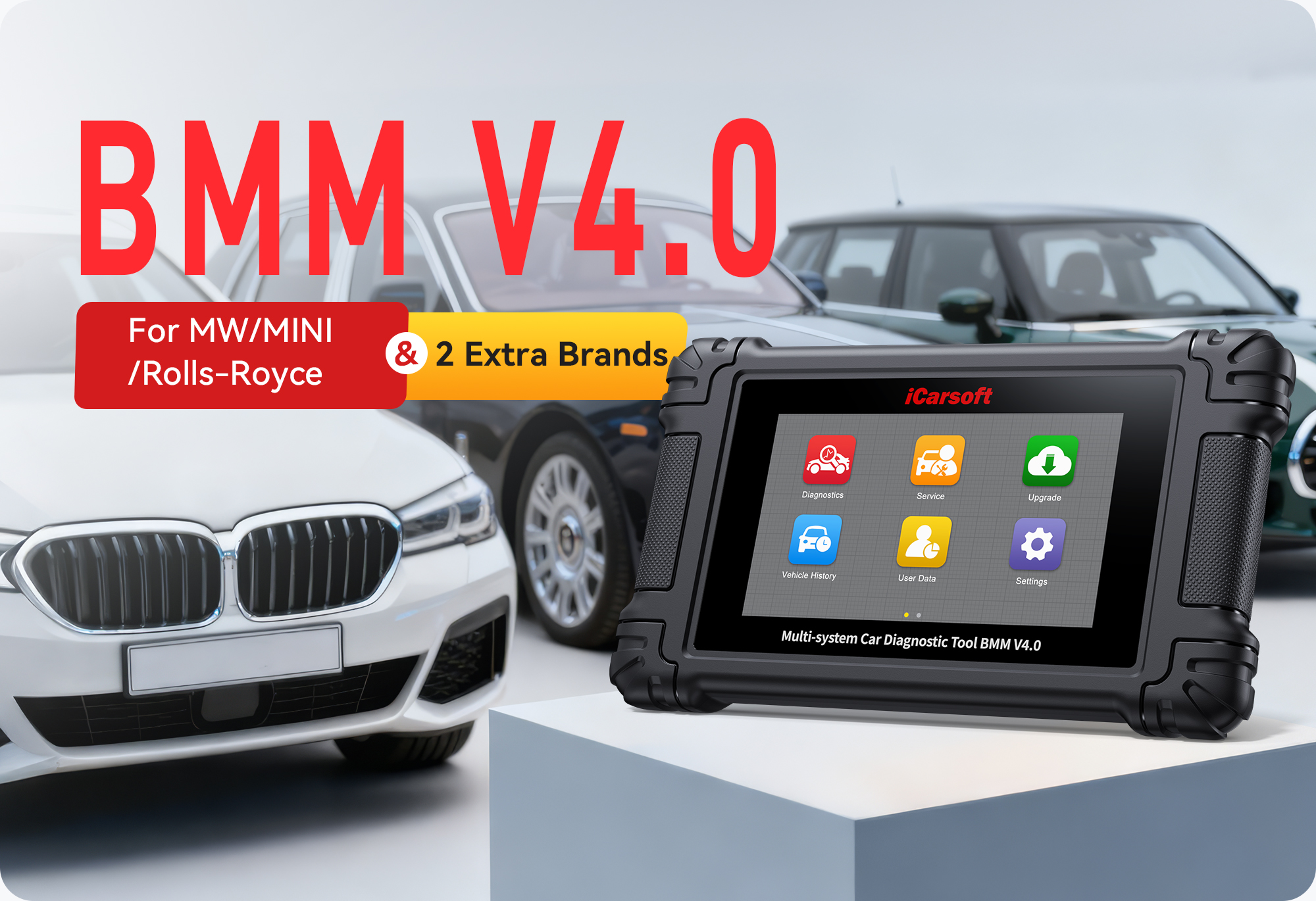 iCarsoft BMM V4.0 is latest car diagnostic tool designed for BMW, MINI and Rolls-Royce vehicles. It supplied with BMW/MINI/Rolls-Royce software pre-installed, and 2 further vehicle makes can be downloaded free of charge. It performs a comprehensive scan of all supported systems within your vehicle. In addition to the regular 4 systems such Engine, ABS, Airbag and Transmission, it covers more complex systems diagnostic functions. With 5 inches touchscreen and Wi-Fi update. The BMM V4.0 is specially made for home mechanics, DIYers, and professionals. Give your aging cars satisfying routine maintenance to avoid costly repairs, a breakdown, or even a crash. General diagnostic functions as following: