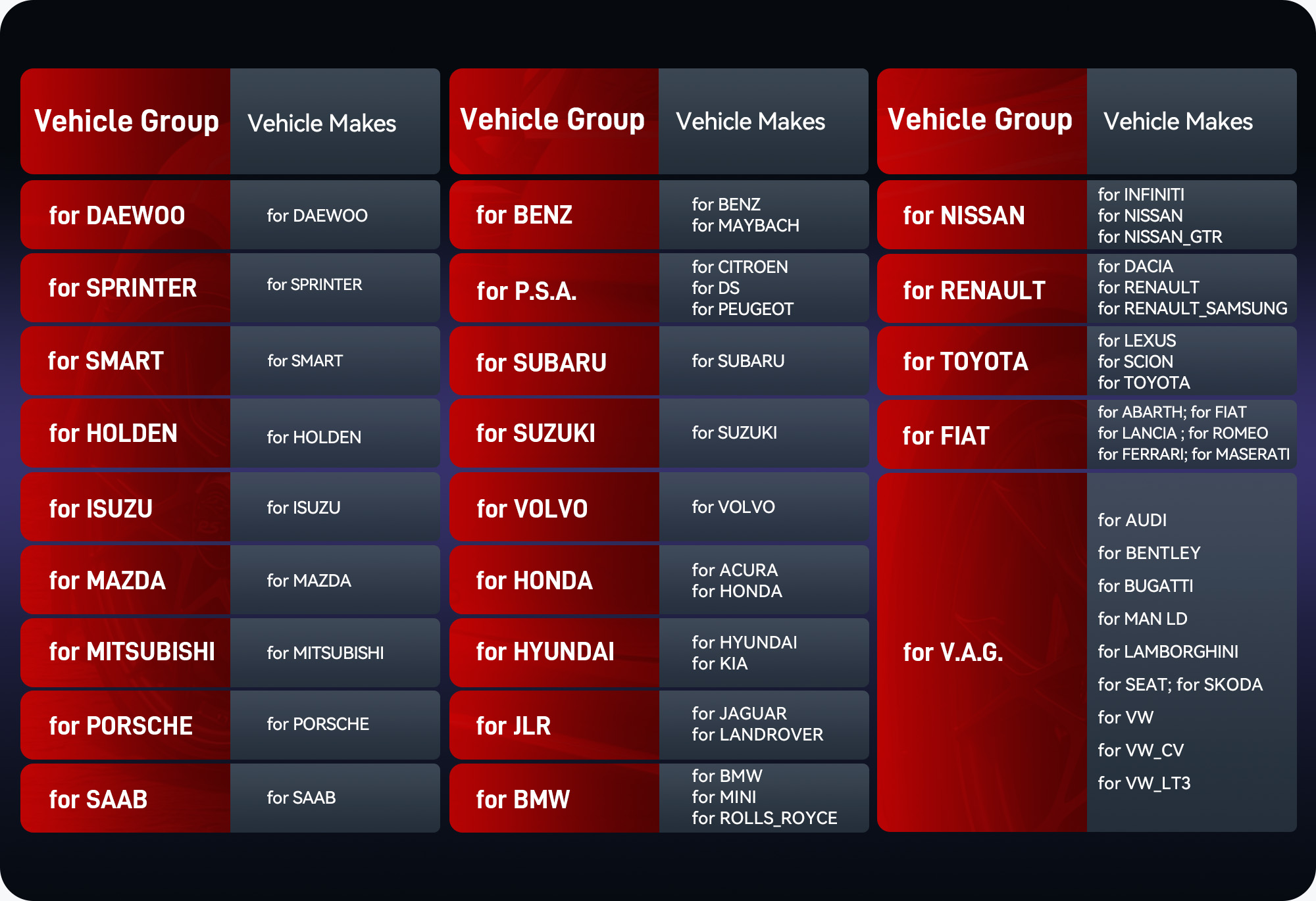 ●Air Conditioner Service: Supports routine maintenance of air condition modules, for example, air conditioning system adaption reset, rese air conditioning compressor, run in air-conditioning compressor, stepper motor initialization.
